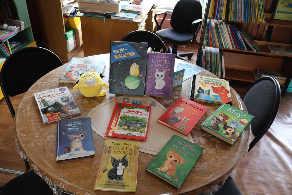 Весь день в библиотеке работали тематические выставки, где можно было познакомиться с книгами о котах, рассмотреть веселые и яркие картины, а также многочисленные разнообразные фигурки котов и кошек.