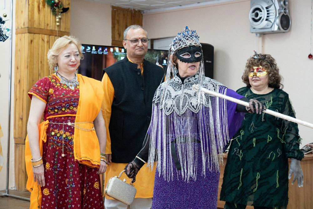 Представление проходило на татарском языке. Участники праздника – постоянные посетители комнаты татарского быта, а также студенты и гости из Индии. Они показали свой национальный танец, поздравив с наступающим Новым годом.