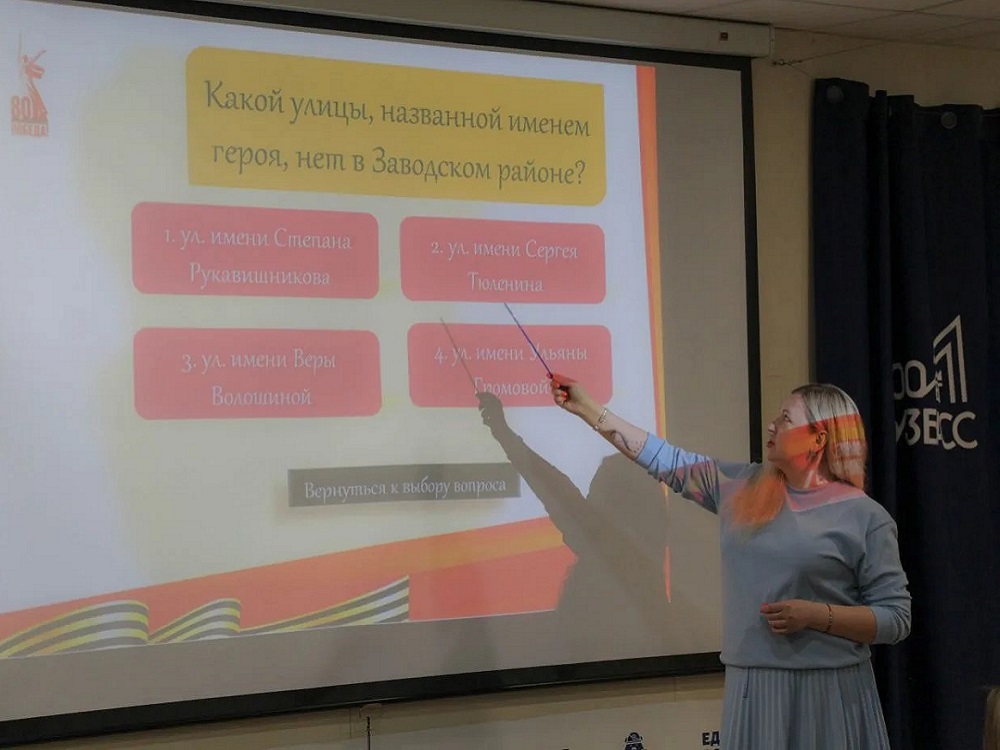 - приняли участие в интерактивной викторине, вопросы которой были посвящены биографии и подвигам героев-краснодонцев Ульяны Громовой и Сергея Тюленина, кемеровчанки Веры Волошиной, а также Героя Советского Союза, командира батальона Юрия Двужильного.